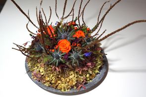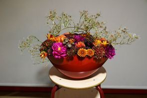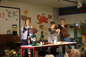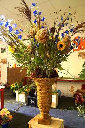 Dit jaar hebben we een herfstbloemschikdemonstratie georganiseerd. Arrangeur van de avond was Chris Jongeneel. Zij vertelde in de aula van basisschool het Startblok over hoe je meer natuurlijk bloemwerk kunt maken o.a. door combineren van materialen uit de tuin of natuur in combinatie met gekochte bloemen. Een en ander was mooi in beeld gebracht door onze cameraman. Een deel van de door haar gemaakte prachtige stukken werden samen met bloemwerken vooraf gemaakt door Kempense bloemschikkers, verloot. De prachtige foto's zijn gemaakt door dhr. Tiny Roelofs.