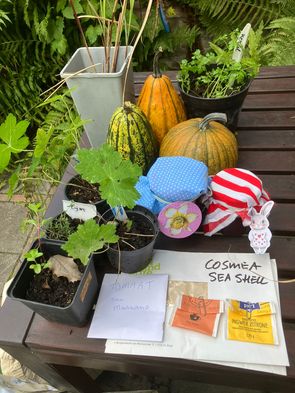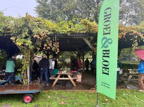 Ondanks de regen werd volop geruild op onze ruilmarkt, ditmaal weer op het gezellige groendomein het Wasven in Eindhoven. Stekjes van tuinplanten maar ook kamerplantjes, zaden, bollen en knollen, pompoenen, honing ; er was van alles te vinden voor de groenliefhebber.